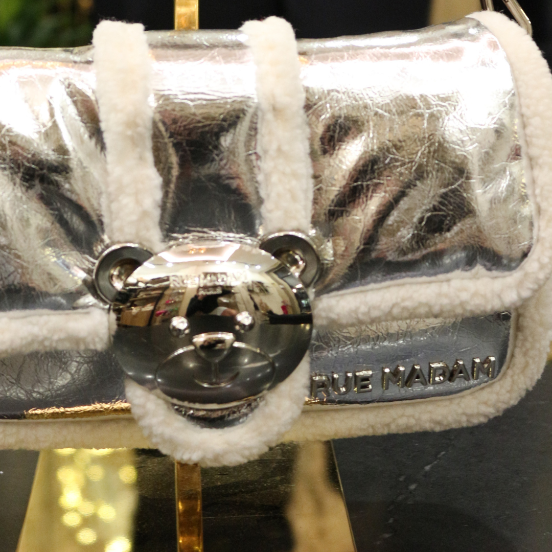 El Bolso Shine It-Bag Rue Madam en color plata destaca por su diseño moderno y sofisticado, pensado para quienes buscan un complemento con personalidad y estilo. Su acabado metalizado aporta luz y protagonismo, convirtiéndolo en una pieza clave tanto para eventos especiales como para elevar looks más informales.