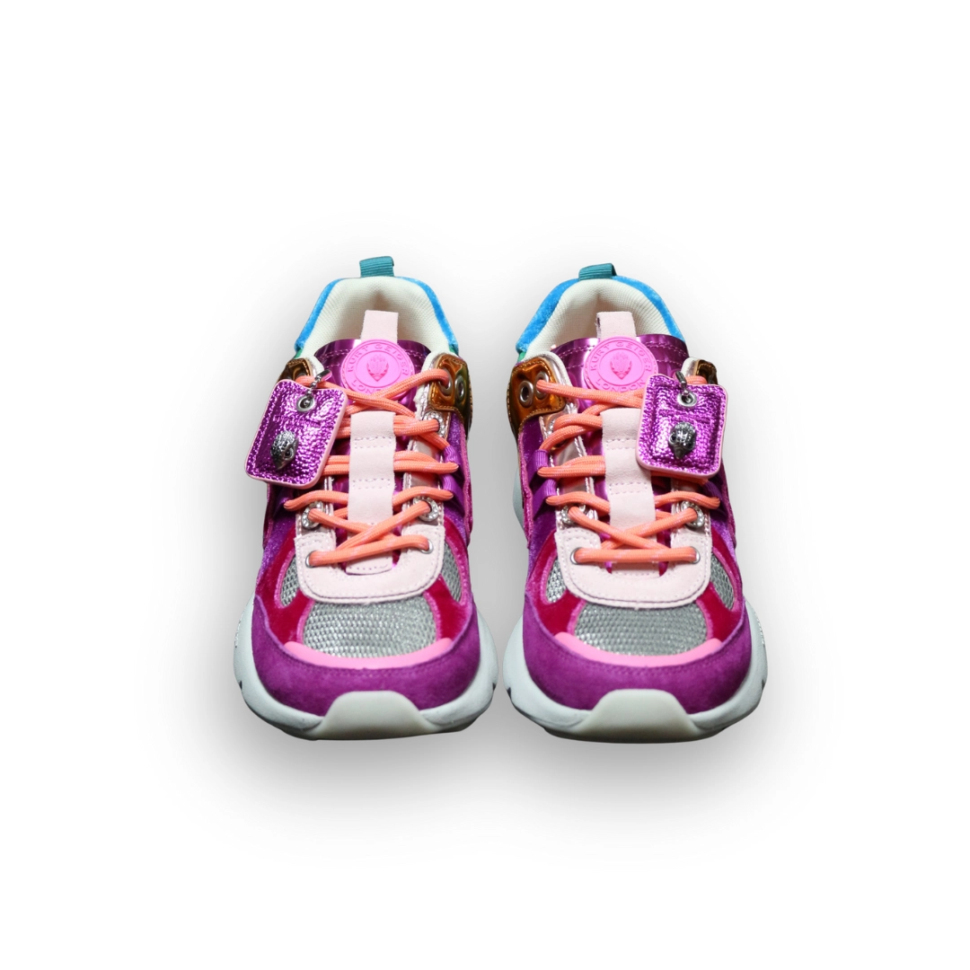Este modelo destaca por su mezcla de colores y texturas, creando un acabado dinámico y actual. Su diseño cómodo y atrevido lo convierte en una opción perfecta para quienes buscan un calzado diferente, versátil y con mucha presencia, ideal para dar un toque único a cualquier look.