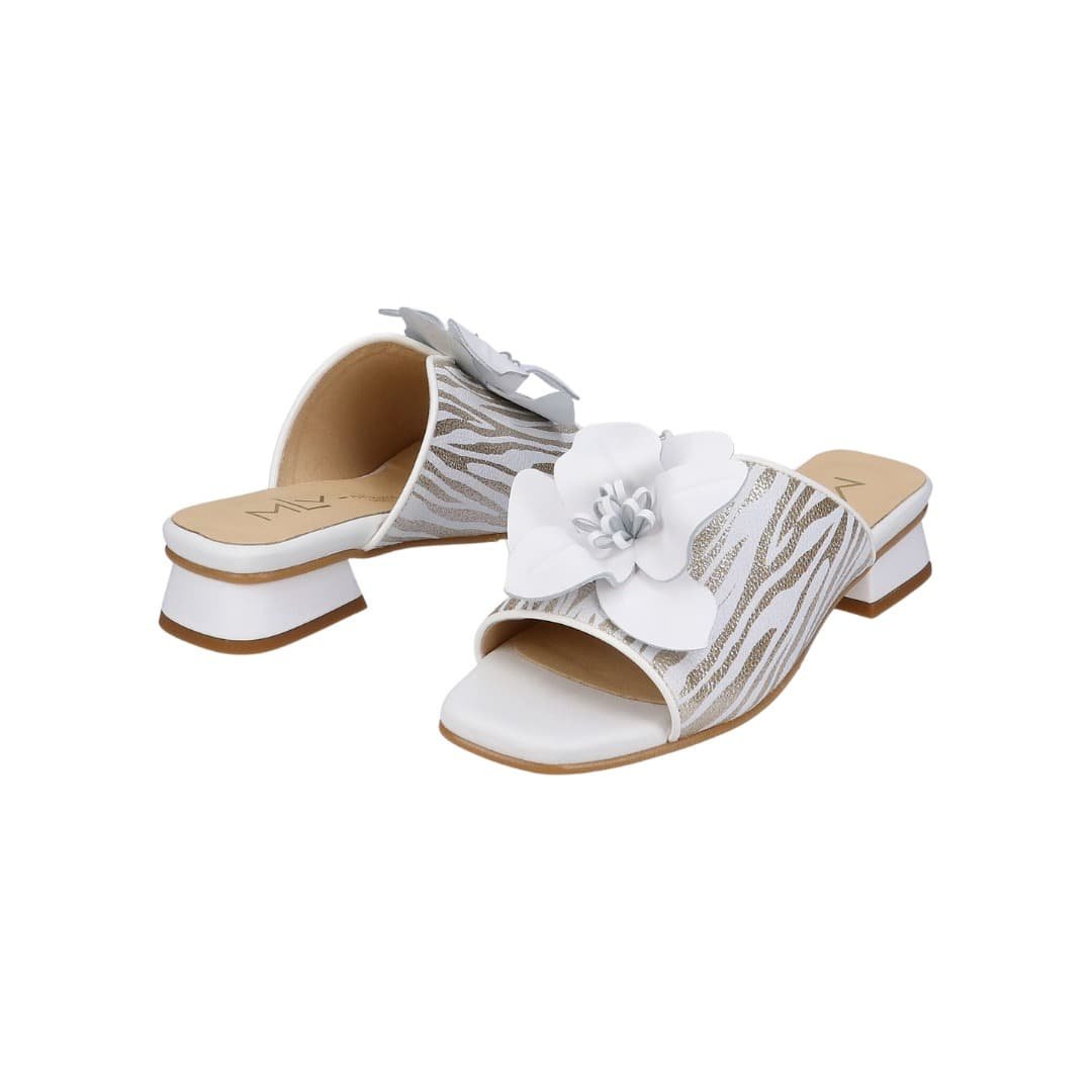 La sandalia MLV Carol destaca por su diseño elegante y femenino, perfecta para aportar un toque especial a cualquier look. Su pala con acabado texturizado en tonos claros combina con detalles en relieve que aportan sofisticación y estilo.
