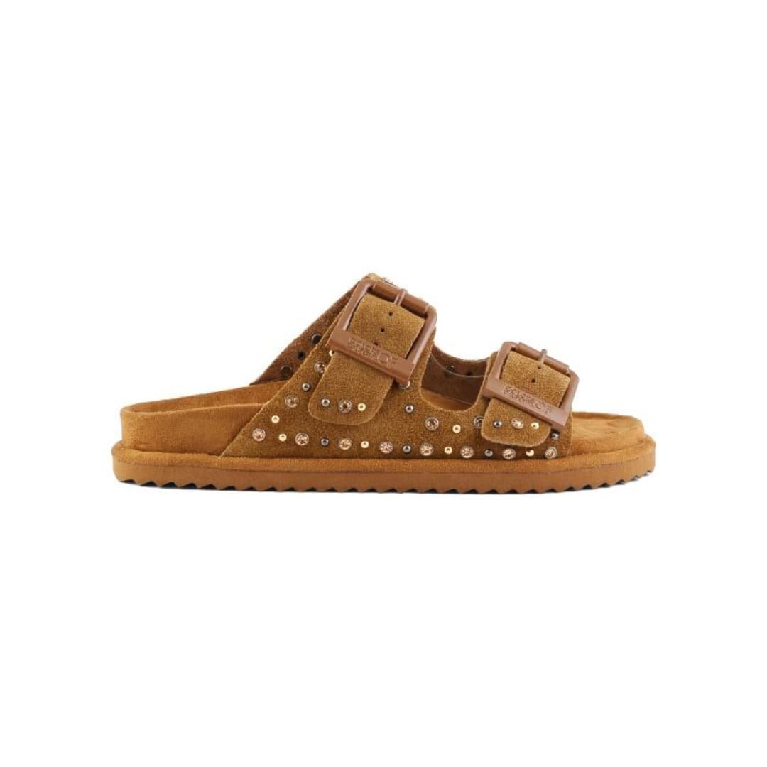 El diseño incorpora doble hebilla ajustable que garantiza una sujeción cómoda y adaptable, mientras que las tachas metálicas añaden un toque moderno y diferenciador. Su estructura ligera y suela plana proporcionan una pisada cómoda durante todo el día.